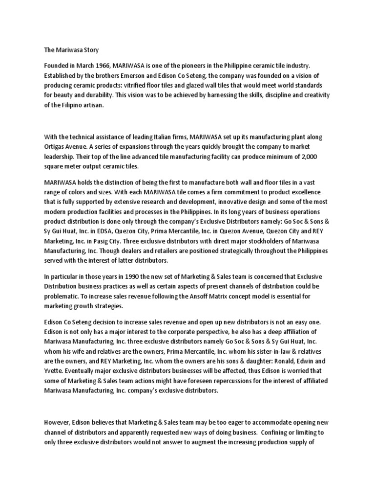 Mariwasa manufacturing inc the leader in ceramic tile industry in the country and the siam cement group of companies a highly respected organization in thailand and in asia.